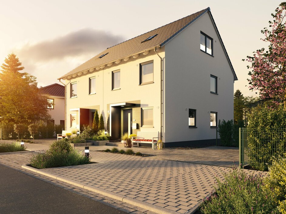 Stellen Sie sich vor… Ihre Kinder kommen abends vom Spielen nach Hause, während Sie nach einem langen Tag ein Glas Wein vor Ihrer Haustür genießen. Das Laufrad wird einfach an die Hauswand des Massivhauses gelehnt. Dank des neuen, robusten „Besenzug“-Putzes ist das kein Problem. Die sandigen Schuhe der Kinder bleiben vor der Haustür liegen. Es kann nichts passieren, sie stehen ja überdacht. Während Sie einen Schluck Wein trinken, lassen Sie den Blick über Ihren Vorgarten schweifen und winken dem Nachbarn zu, der gerade mit dem Hund seine Abendrunde läuft. Sie fühlen sich rundum wohl in Ihrem Zuhause. Plötzlich fängt es an zu regnen. Aber auch der kurze Schauer kann Ihre gute Stimmung nicht trüben, denn Sie sitzen trocken und geschützt unter dem Vordach Ihres Town & Country Massivhauses.